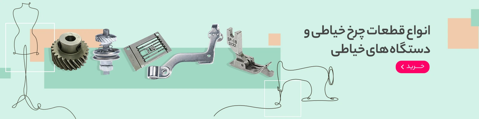 - چرخ خیاطی خانگی و صنعتی از برندهای معتبر مثل جک (Jack) و زنگوله (Q.x.yuan)
